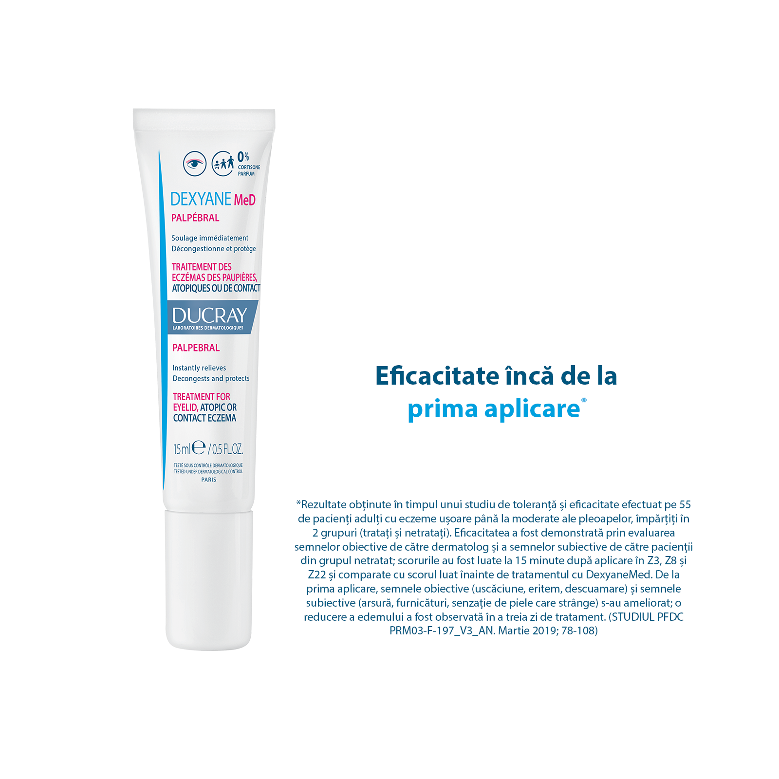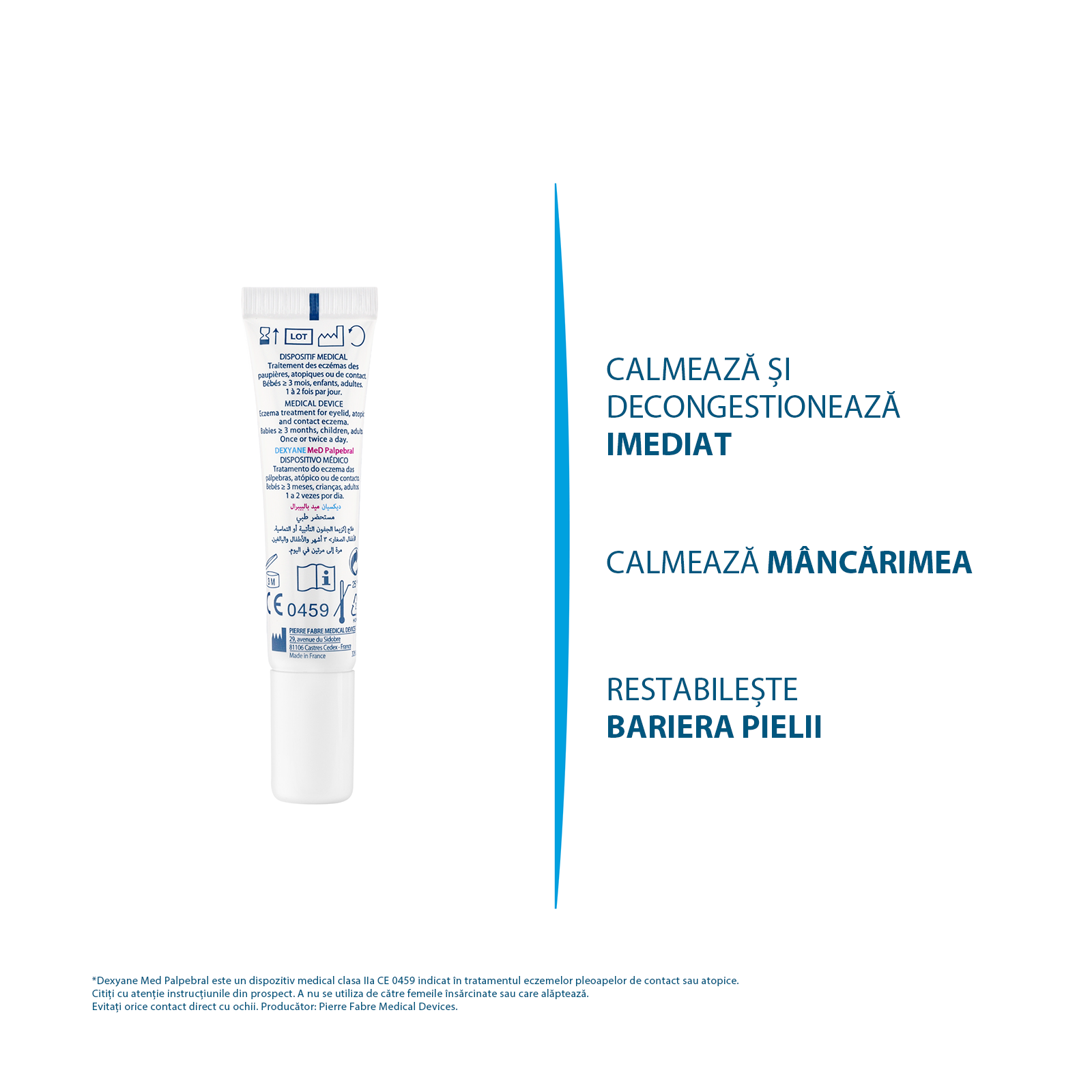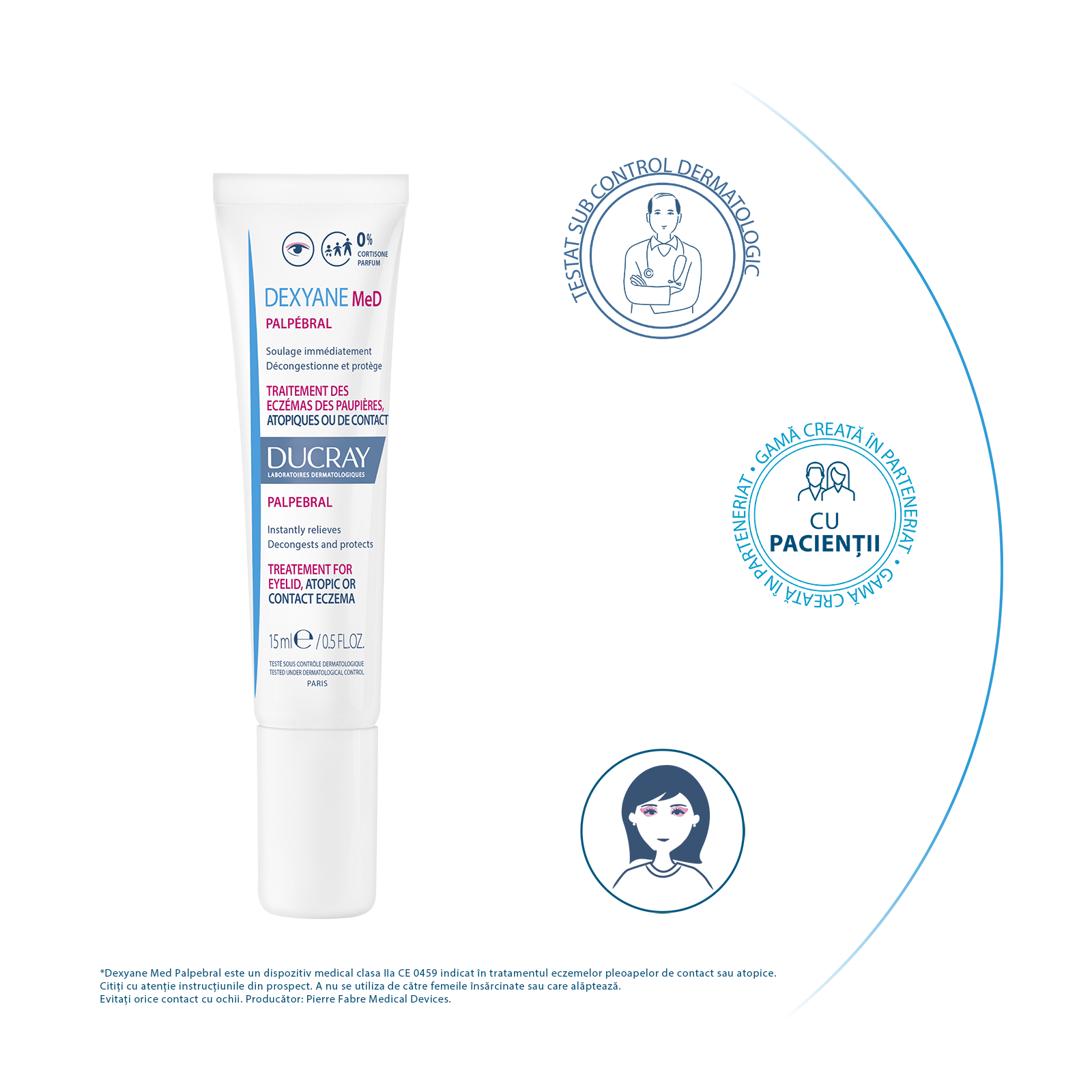 - DEXYANE MeD Palpebral este un dispozitiv medical pentru tratarea eczemelor atopice sau de contact localizate pe pleoape.