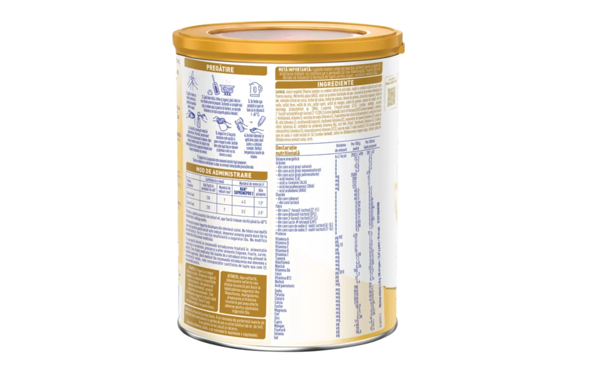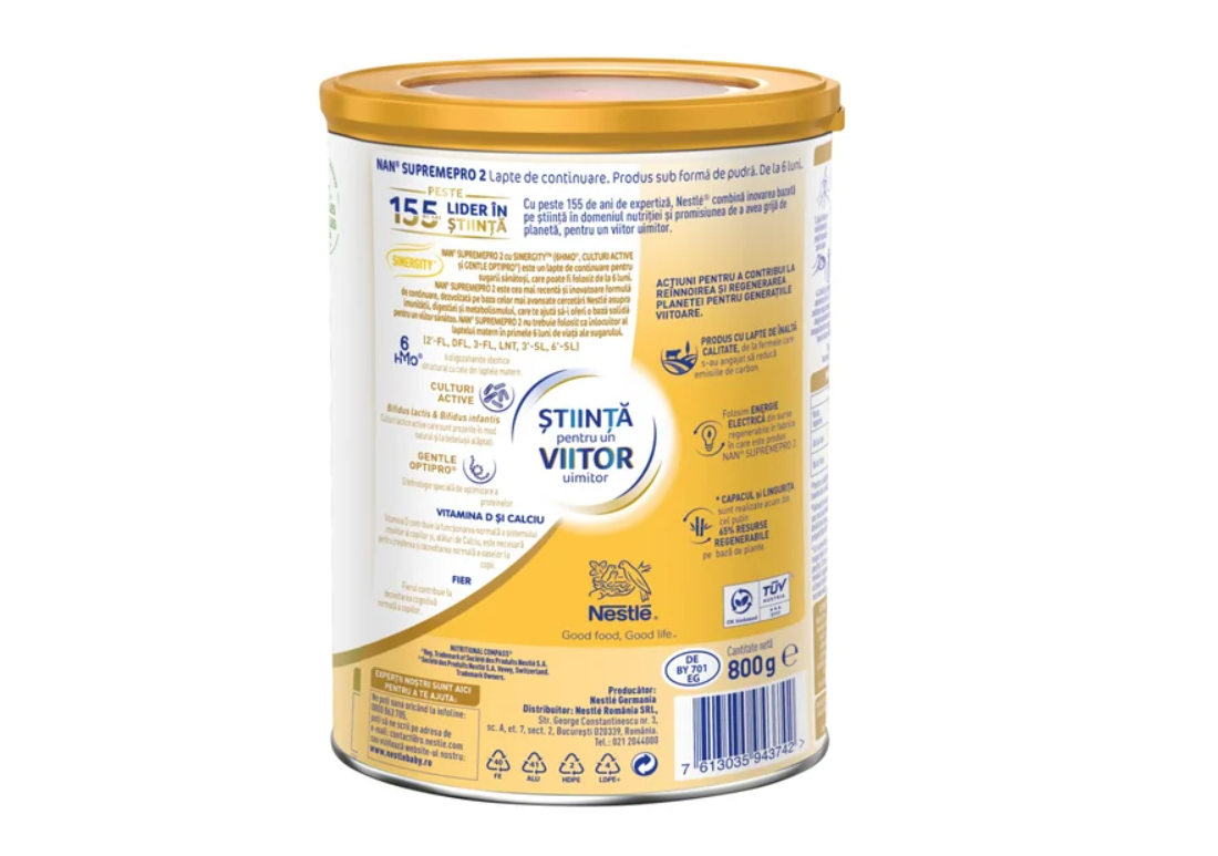 Nestlé NAN SUPREMEPRO 2 nu trebuie folosit ca inlocuitor al laptelui matern in primele 6 luni de viata ale sugarului.