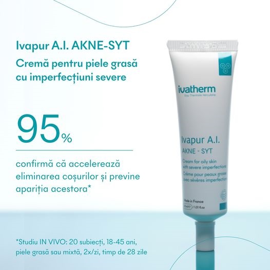 Crema pentru piele grasa cu imperfectiuni severe Ivapur A.I Akne-Syt, 30 ml, Ivatherm