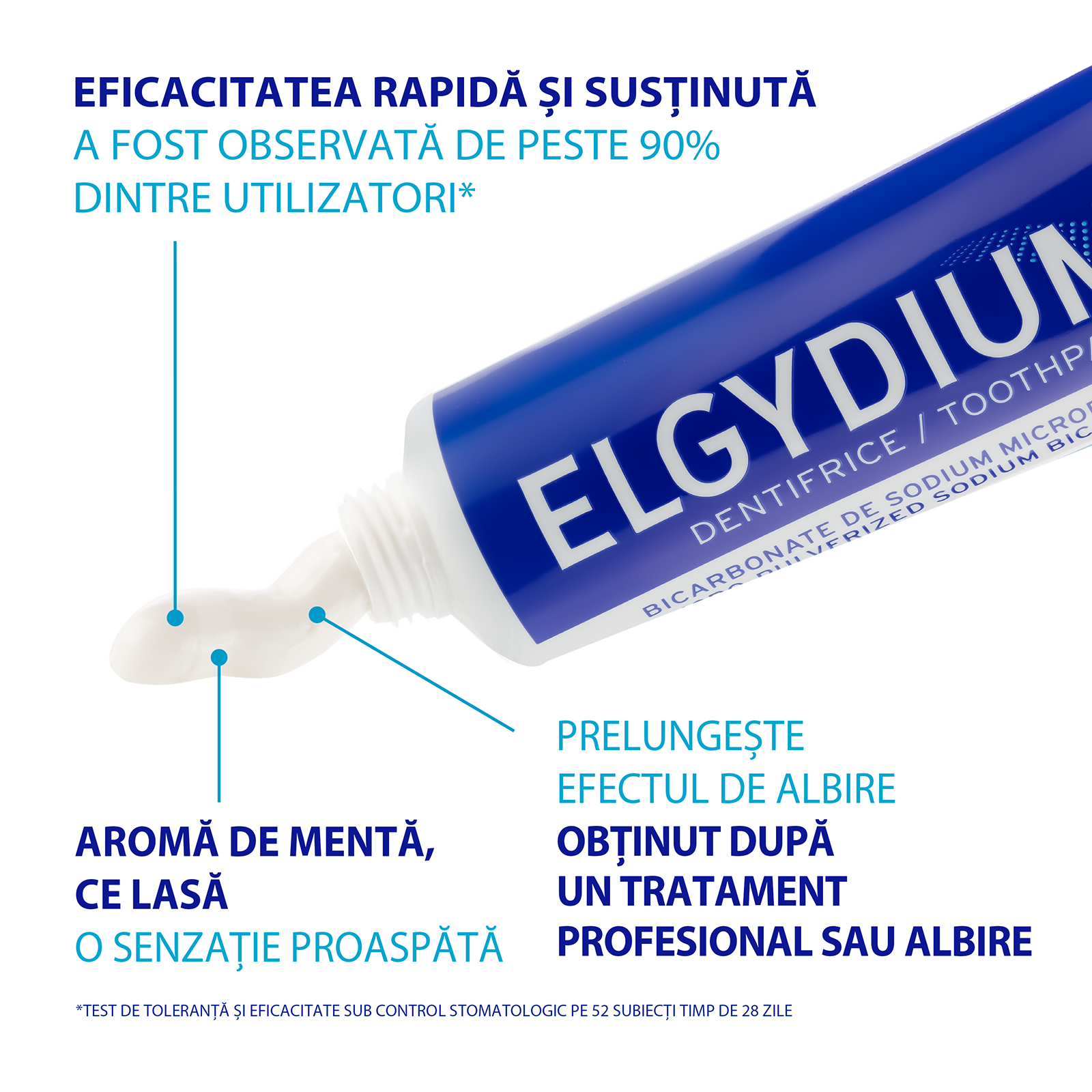 Pasta de dinti ELGYDIUM Antiplaca garanteaza o reducere cu 93% a placii bacteriene in mai putin de 3 saptamani de utilizare*.