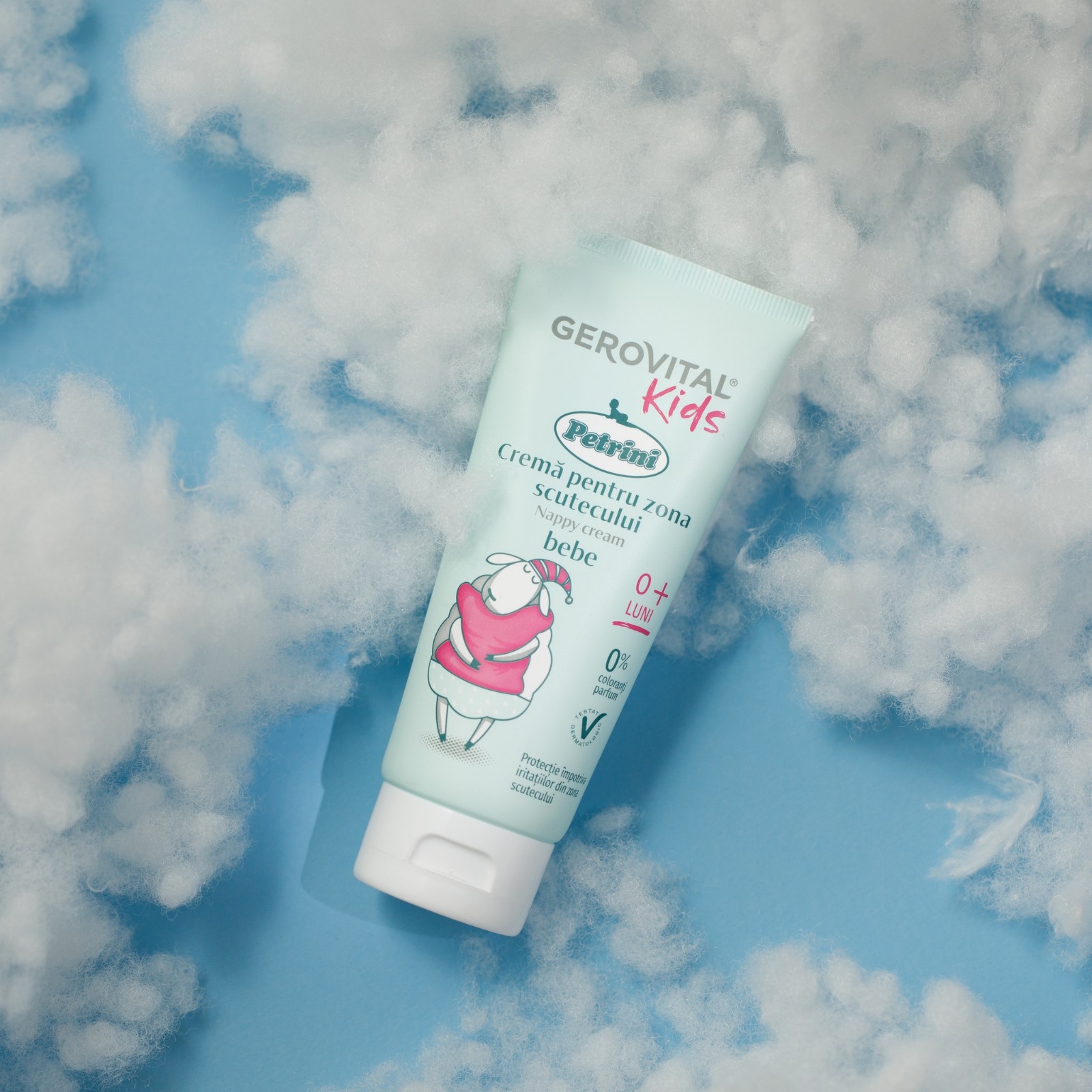 Gerovital Kids Petrini Crema pentru zona scutecului este un produs-dermatocosmetic de ingrijire a pielii în caz de eritem fesier. Sunt stimulate procesele de regenerare si cicatrizare a pielii, datorita D-Pantenolului si Uleiului de galbenele. Calmeaza pielea iritata si reduce roseata si disconfortul.